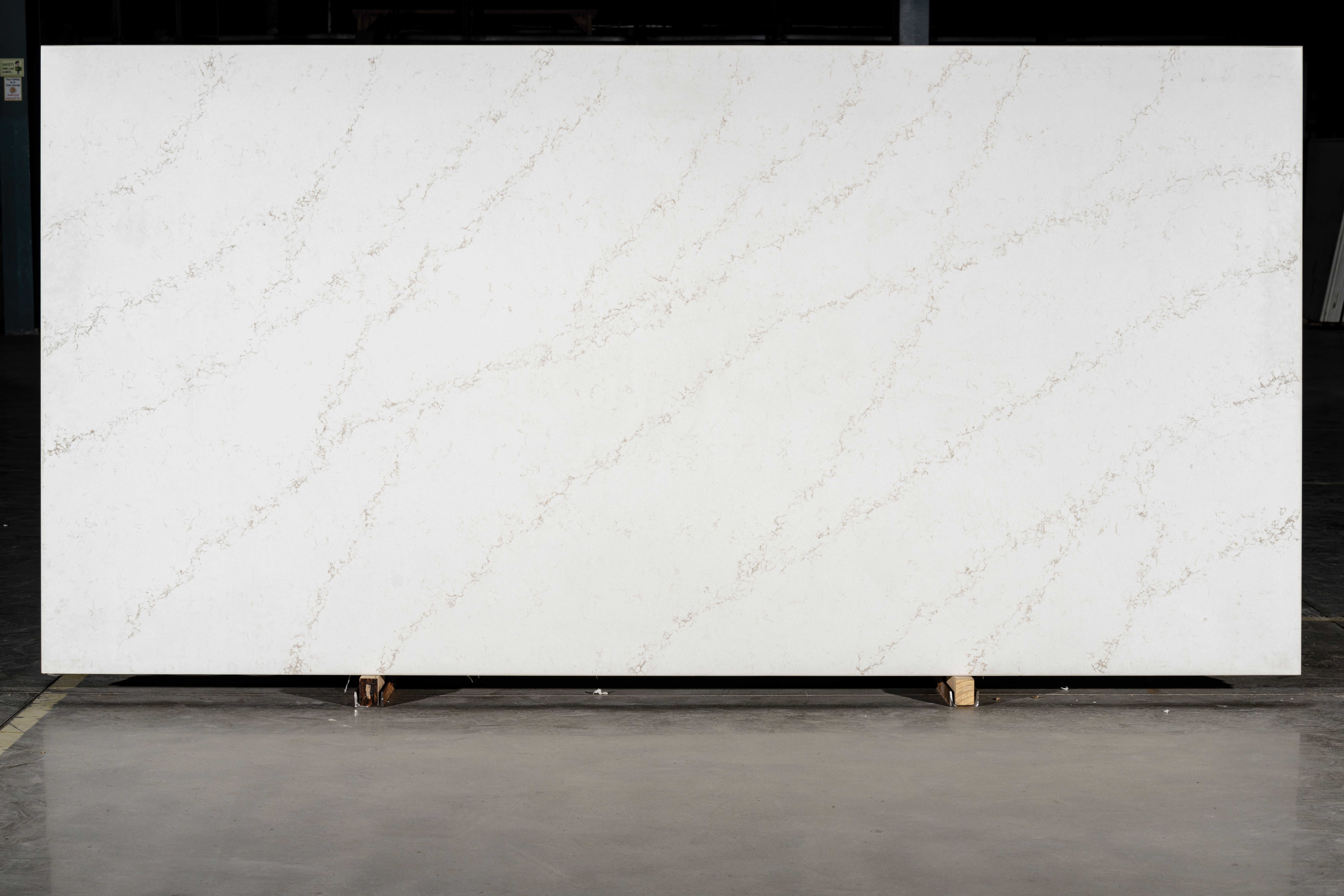 Aurus Twilight is a luminous white quartz accented with soft golden veining, capturing the warmth and elegance of a twilight glow.